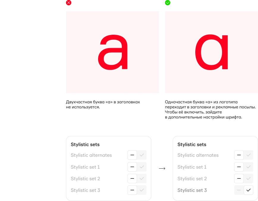 Начертания шрифта для фирменных коммуникаций строго регламентированы, изменение начертаний не допускается — это размывает образ бренда